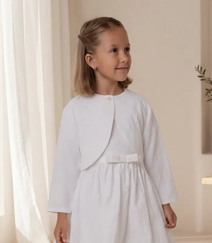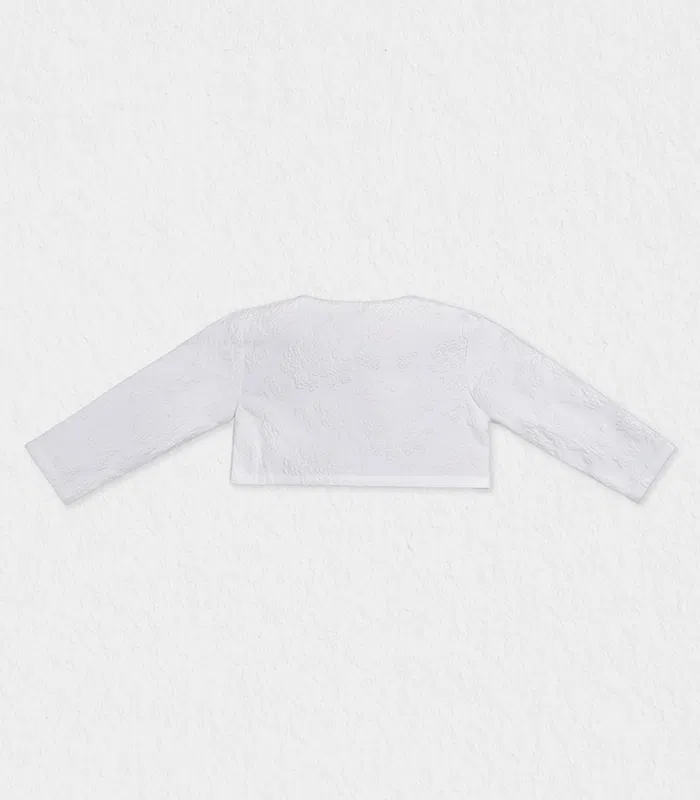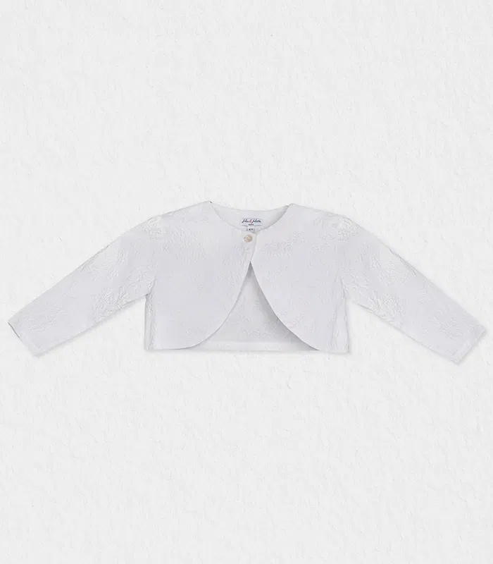 Add a touch of Parisian-inspired grace to her wardrobe with the Enya Bolero. This stunning cropped jacket is meticulously crafted from premium white fabric, featuring a rich, dimensional grape vine embroidery that catches the light beautifully. Designed with a clean silhouette and a delicate single-button fastening, it provides the perfect balance of coverage and style without overshadowing her favorite dress. Whether she’s attending a wedding, or a holiday gala, this bolero serves as the quintessential finishing piece for a polished, high-end look.
