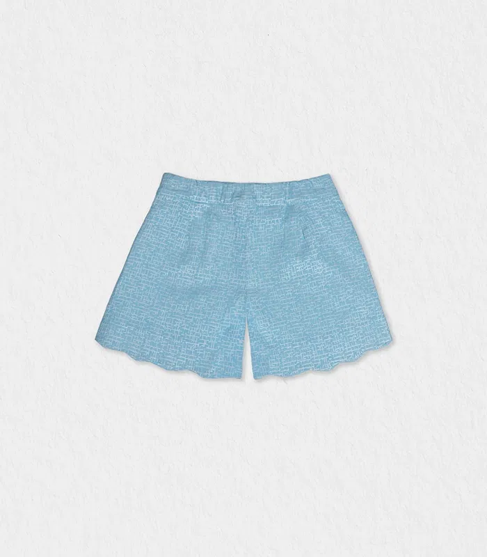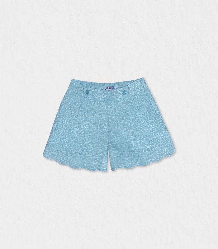 These girls’ shorts with a refined and elegant design will give her a look with fashioned accent. It features a wavy trim and a very luxurious textured jacquard fabric in light blue color. It is adorned with a show belt on the waist which is adjustable for more practicality. Match it with one of Jules & Juliette blouses for this season; you get the perfect set for our beautiful girl!