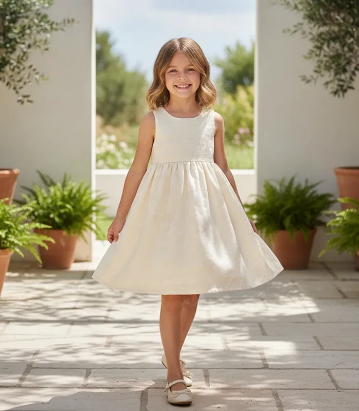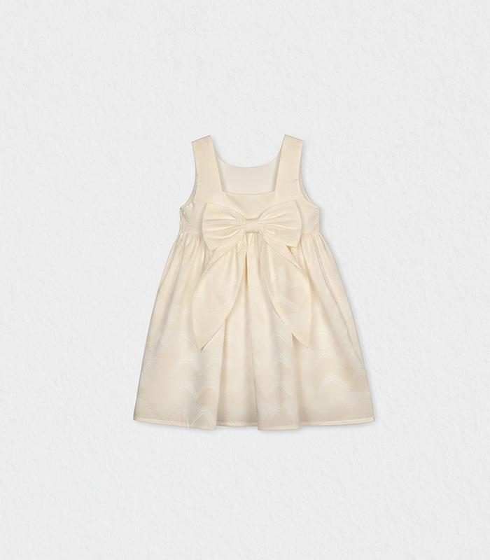 The iconic Bella dress makes its radiant return this season under the Jules & Juliette house, reimagined in a palette of fresh summer hues and crafted from exquisite French jacquard metallic fabrics, with embedded hearts. Designed with an elegant backless silhouette, it features two long ribbons tied into a graceful bow for a beautifully refined finish. Light, effortless, and full of charm, this timeless piece is destined to be her true coup de cœur of the summer.