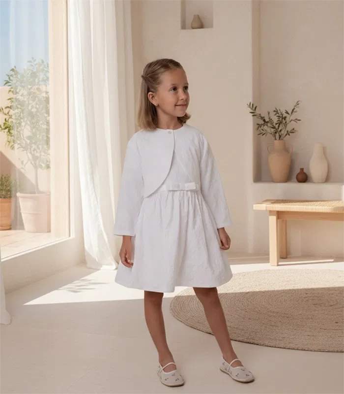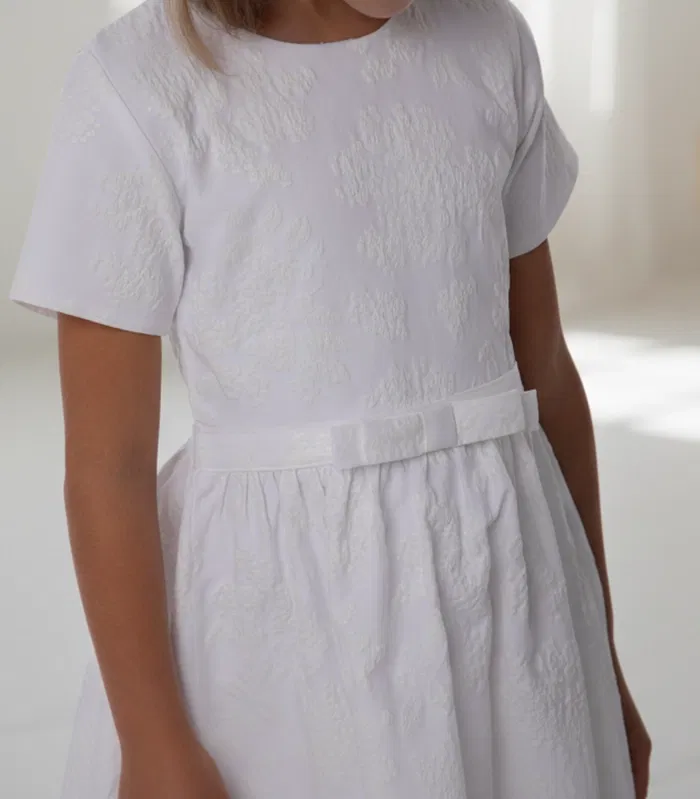 Celebrate life’s most beautiful milestones with the Eryna Dress, a piece designed with love for every special occasion. Crafted from a premium jacquard featuring a rich, dimensional grape vine embroidery that catches the light beautifully. The silhouette is defined by a subtle, elegant built-in belt at the waist, leading into a gracefully wavy skirt that’s perfect for comfort and style. Whether it’s a spring wedding or a formal celebration, this dress ensures she feels as extraordinary as the event itself.