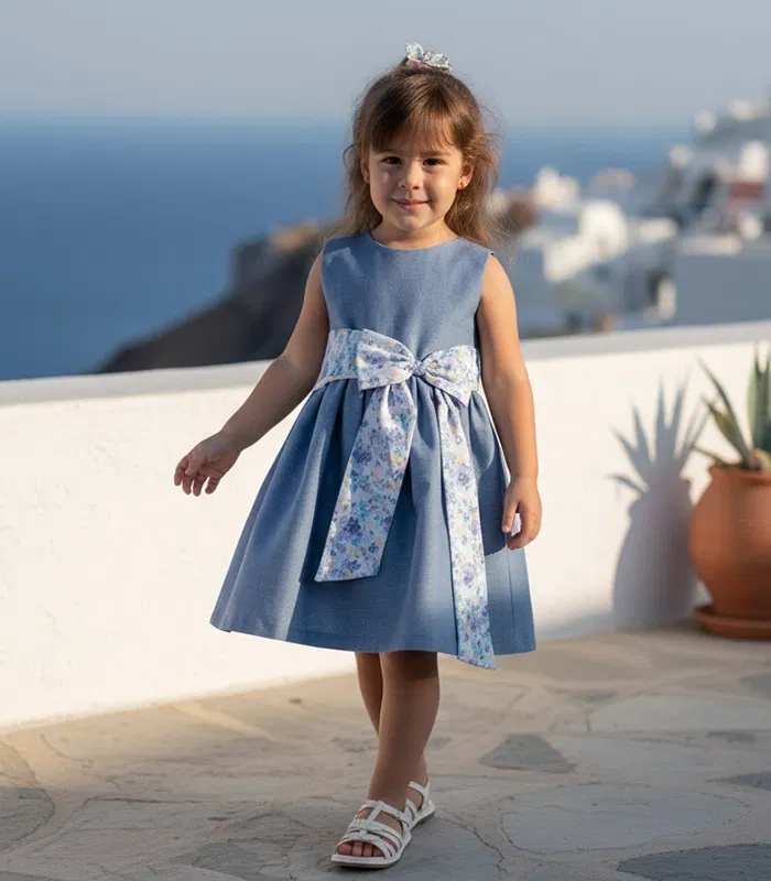 Discover the perfect blend of casual charm and refined style with the Etoile Dress in Denim Fluid. While it carries the timeless, versatile color of classic denim, the fabric is exceptionally soft and smooth to the touch, ensuring your little girl stays comfortable throughout her daily adventures. This sleeveless dress features the signature waist sash that can be tied into a beautiful, artistic bow or a simple knot, allowing for a personalized touch. Whether she’s headed to a family brunch or playing in the park, this dress makes her the “L’étoile” of every occasion.