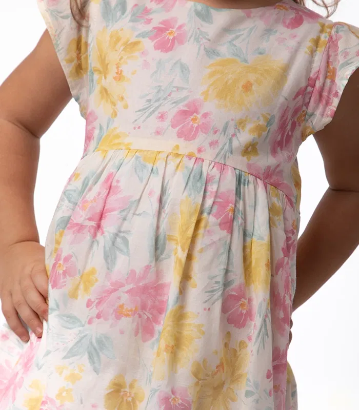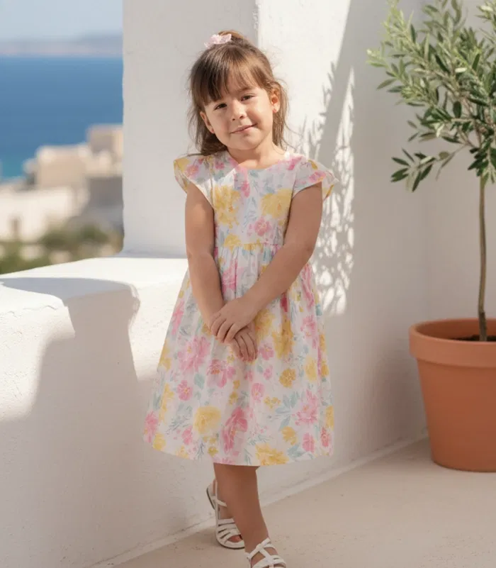 A fresh look for summer days! Characterized by its light voile fabric that features flowery pattern, this dress will be your girl’s pick for everyday! Fresh, light and flowy, Eugenie dress opens on the back with a zipper.