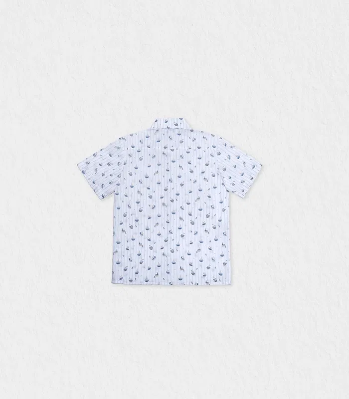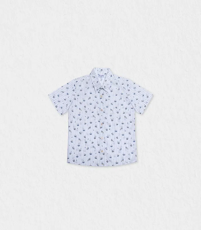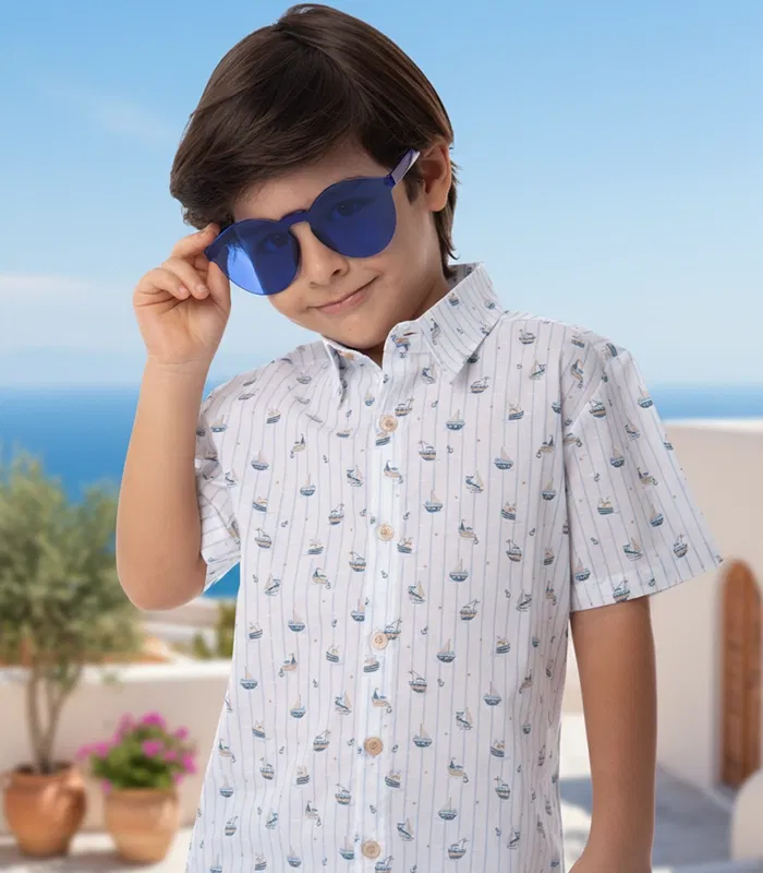 Opting for a short sleeve shirt in unique blue boat print and soft cotton will be a very practical choice for this summer. With classic refined design and fabric, this shirt will make your boy’s look distinguished. Matches perfectly with an array of J&J shorts.