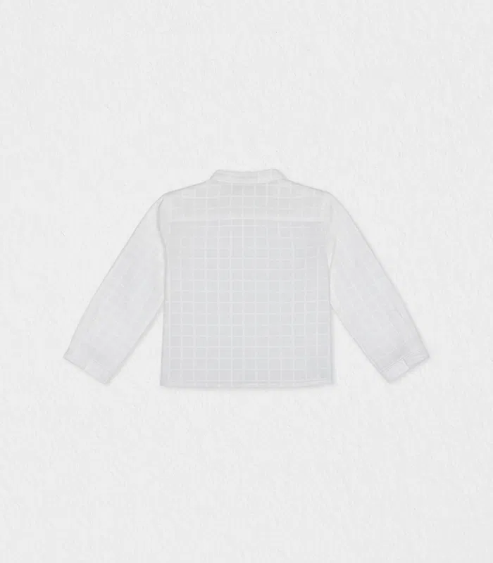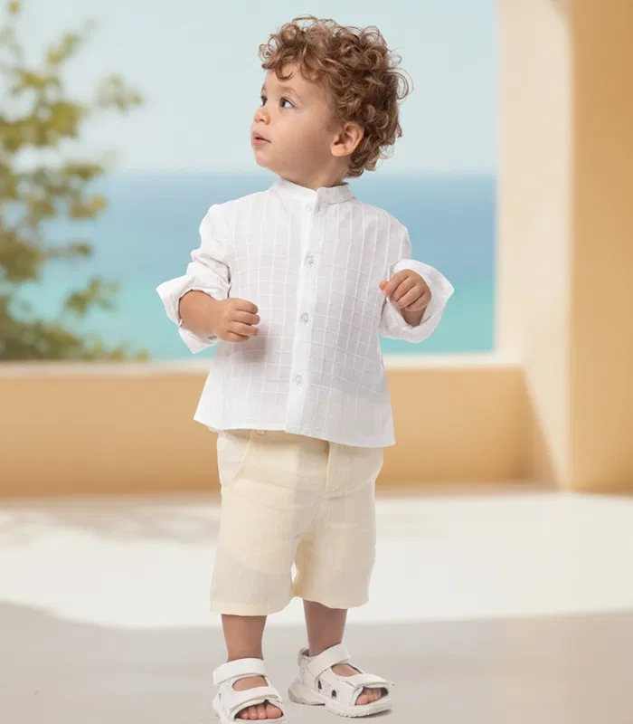 Embodying a refined French aesthetic, this white shirt is a cornerstone of a sophisticated summer wardrobe. Crafted from premium European cotton, the design features a clean band collar and a classic front button placket for an effortlessly polished look. Left chest pocket provides a touch of tailored detail, making this piece as functional as it is stylish. Its minimalist European silhouette ensures your boy looks distinguished at garden parties or seaside dinners alike.