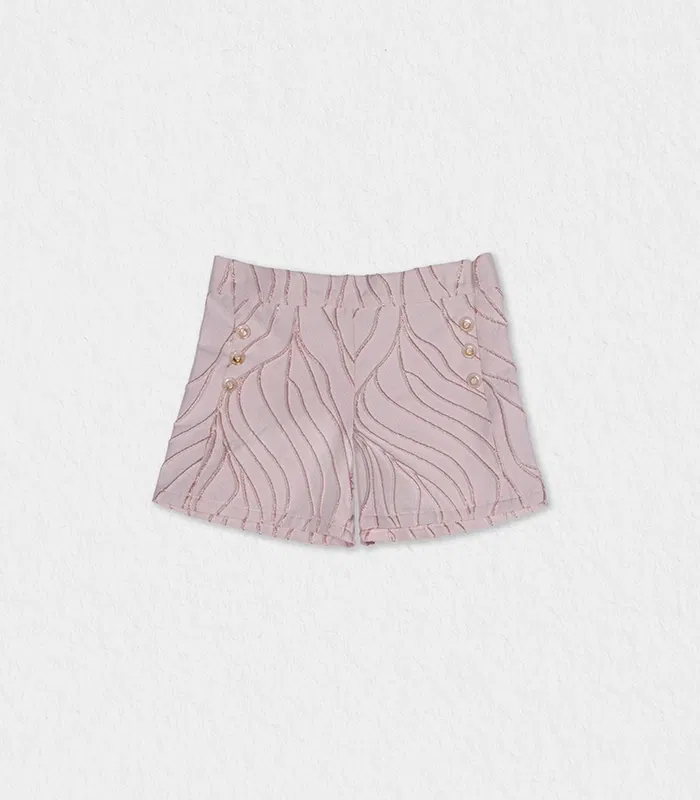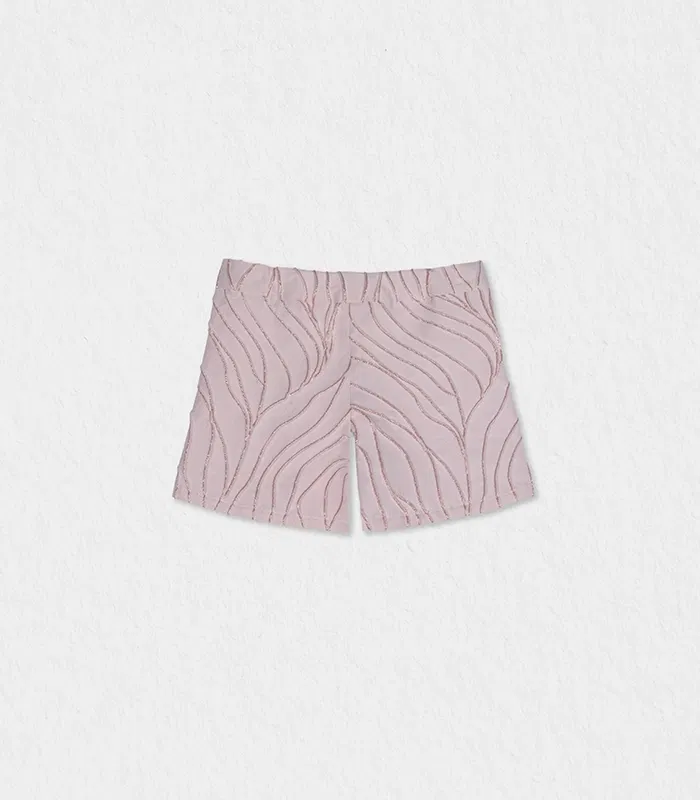Designed for refined summer moments, these elegant baby girl shorts are crafted from premium textured jacquard in a delicate light pink hue with glittery wavy lines. The structured yet breathable fabric offers a sophisticated look while remaining soft and comfortable for warm days.
