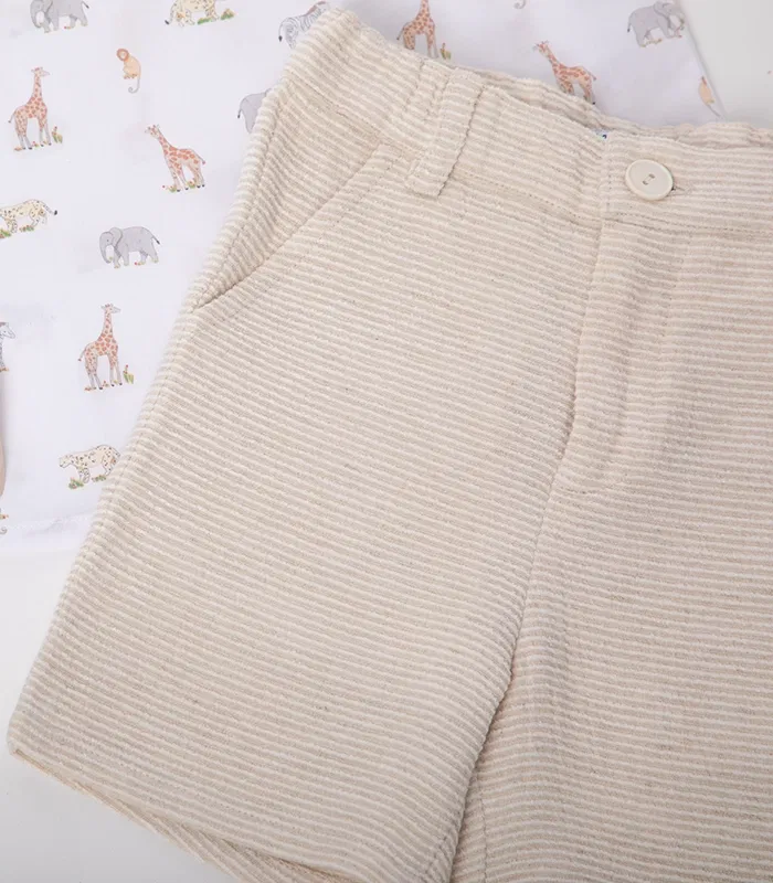The perfect short for your baby boy for this season. Made from a textured linen viscose blend, it features 2 front pockets, an adjustable waistband and unique fastening button. Match it with any of Jules & Juliette shirts or t-shirts.