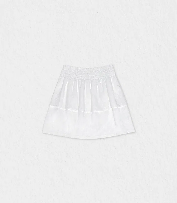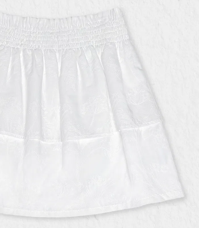 Complete her elegant ensemble with the Fiona Skirt, a beautiful companion piece designed to pair seamlessly with our new blouse offering. This skirt is expertly crafted from premium white fabric featuring a signature flower embroidery, offering a rich texture and a sophisticated glow. Designed for both comfort and style, it features a smocked elastic waistband for an effortless fit and a tiered silhouette that adds a graceful, airy volume to her every step. Whether paired with the matching blouse for a ceremony or a simple top for a garden party, this skirt ensures a look of refined charm.
