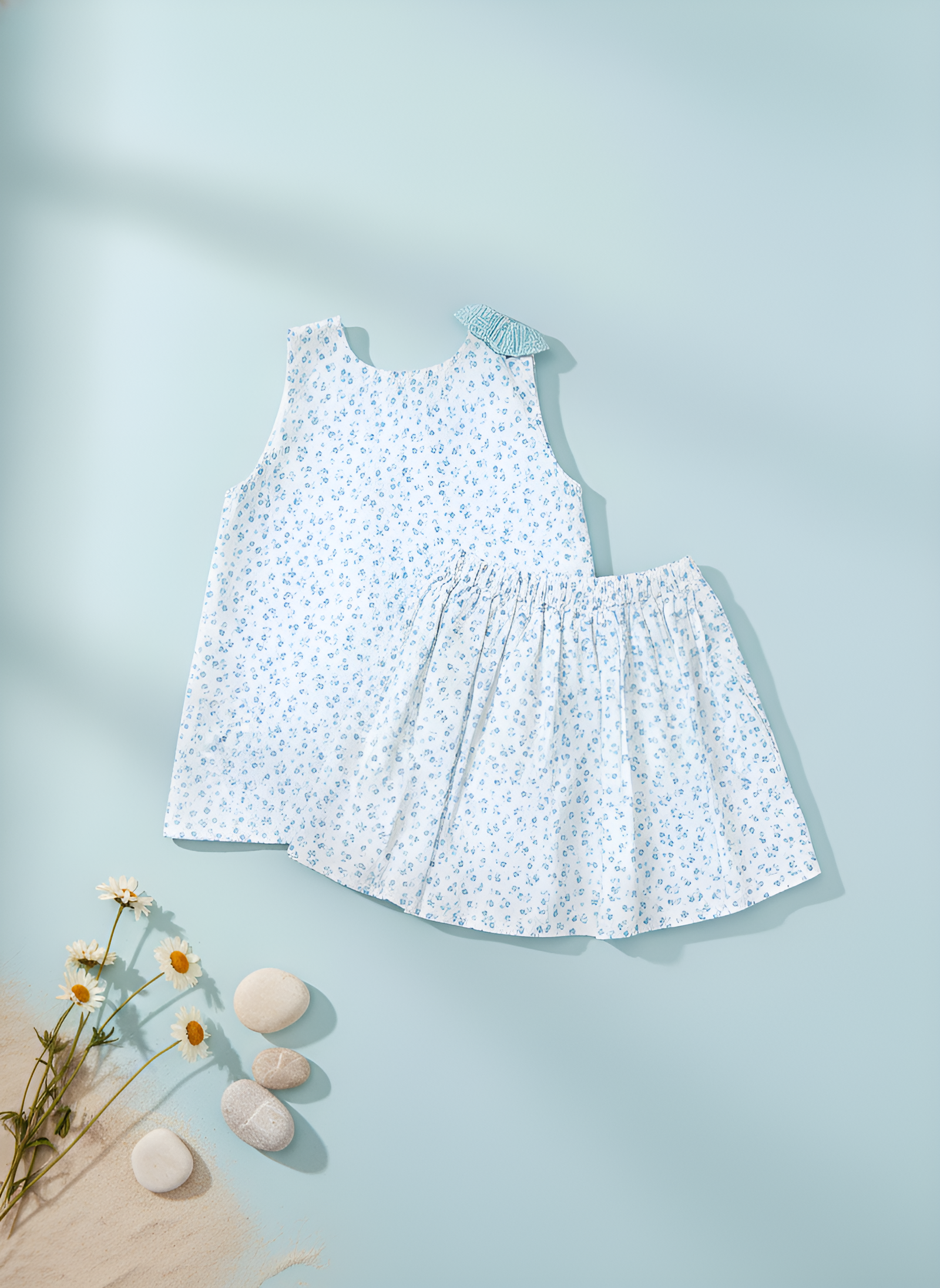 Bring a sense of brightness and joy to her summer days with the Philo Skirt in Flowery Aqua Blue, a soft and flowy favorite designed for everyday comfort. This piece is crafted from 100% premium cotton, featuring a delicate floral print in a serene aqua-blue palette. With its airy silhouette and comfortable elasticated waistband, it is an easy-to-wear staple that moves gracefully with every step.