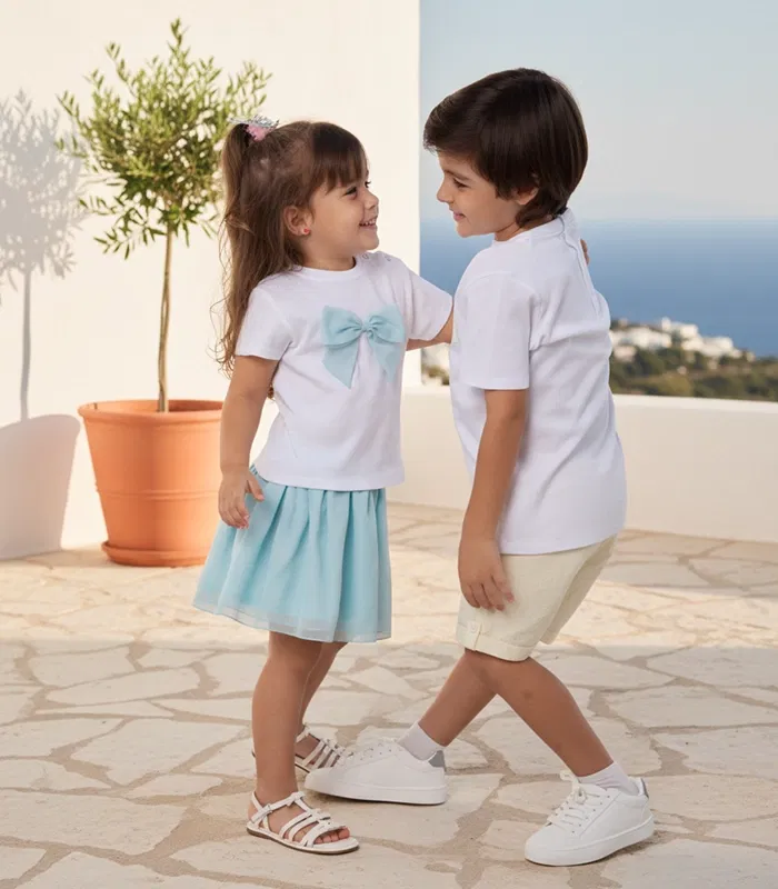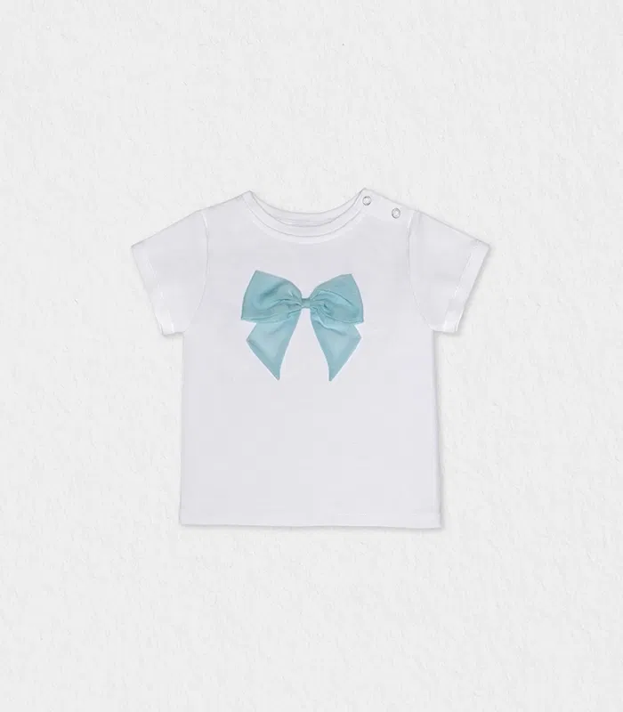A tshirt in short sleeves for baby girls, very comfortable in 100% premium cotton accented with tulle bow. Matches perfectly with Jules & Juliette bottoms for baby girl.