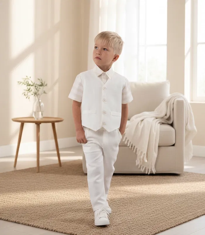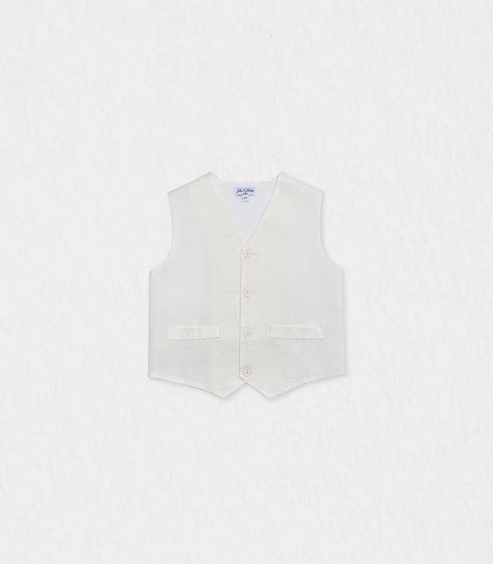 This sophisticated vest for boys is the perfect addition to any formal or ceremonial outfit. Designed with three elegant front buttons, it offers a polished and refined look ideal for weddings, parties, or other special occasions. Made from high-quality fabric, the vest provides comfort and style, ensuring your little one looks sharp while feeling at ease throughout the event. Its tailored fit and classic design make it a versatile piece that pairs effortlessly with dress shirts, suits, or trousers, making it a must-have for formal celebrations. Available in a range of sizes, this vest adds an extra touch of class to your child’s wardrobe.